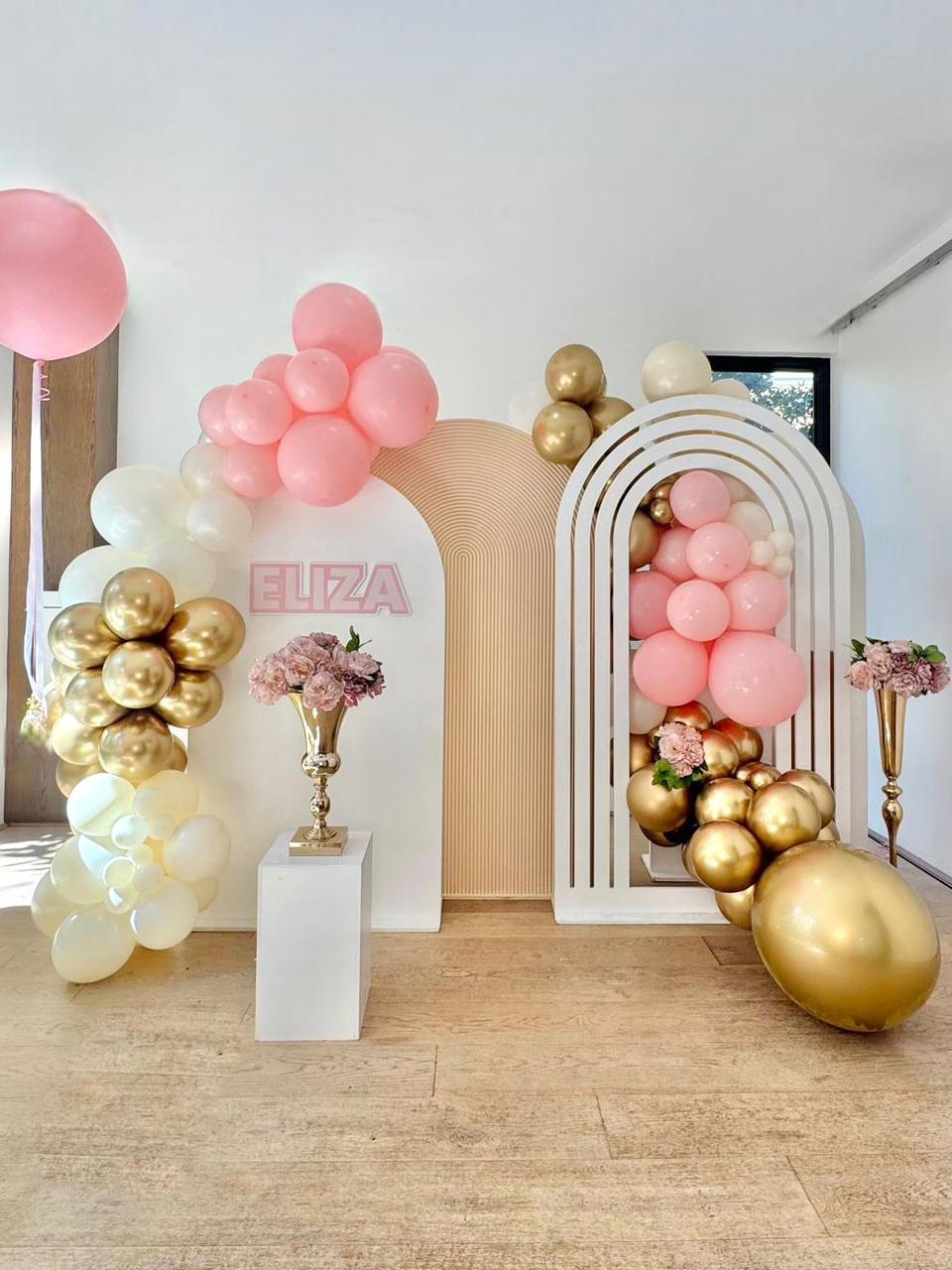 Personalised Bubble Balloon with 3 Shades of Pink Latex Bunch